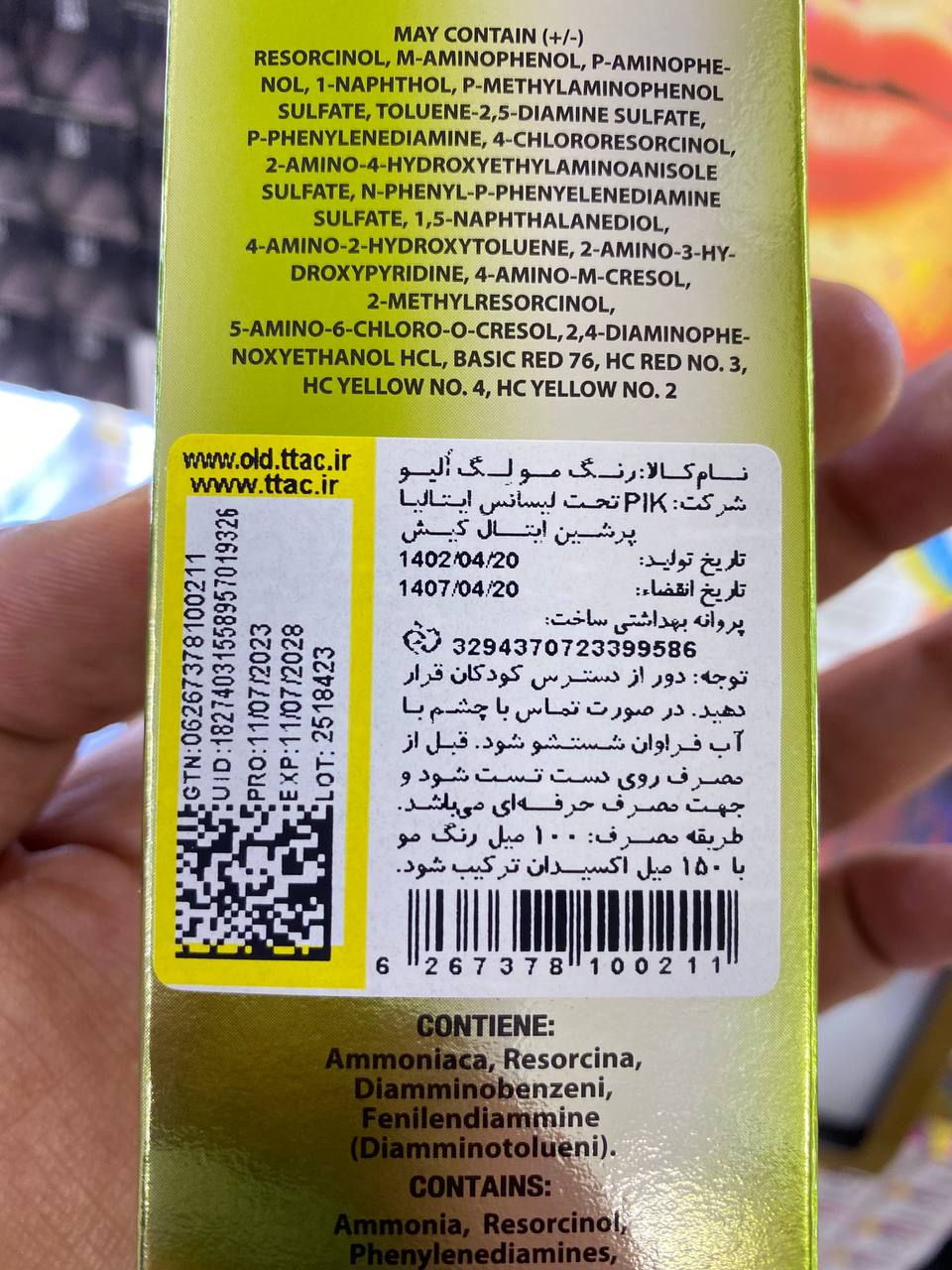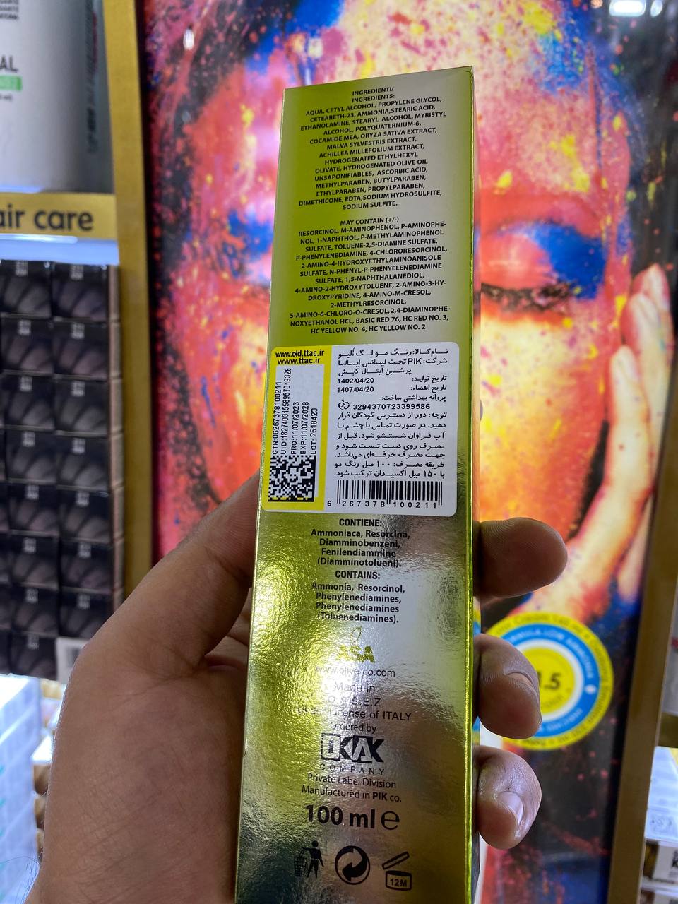 - نسل جدید رنگ موی ایتالیایی الیو (Olive) با افزوده شدن عصاره روغن زیتون و حاوی ترکیبات گیاهی متعدد نظیر عصاره گل ختمی، پودر جوانه برنج، عصاره گیاه بومادران و ویتامین C، یکی از قوی ترین منابع ویتامین E را دارا می باشد.