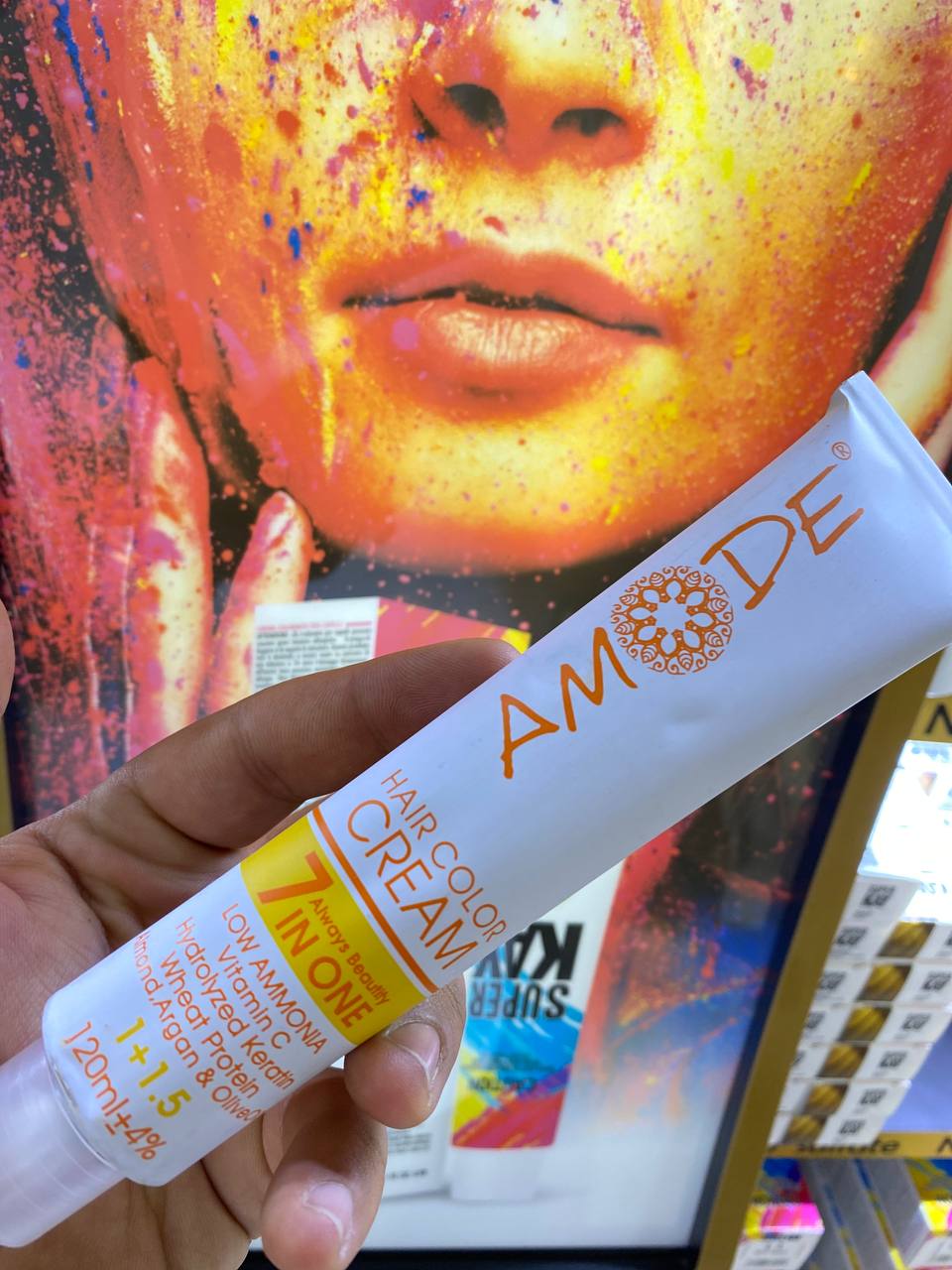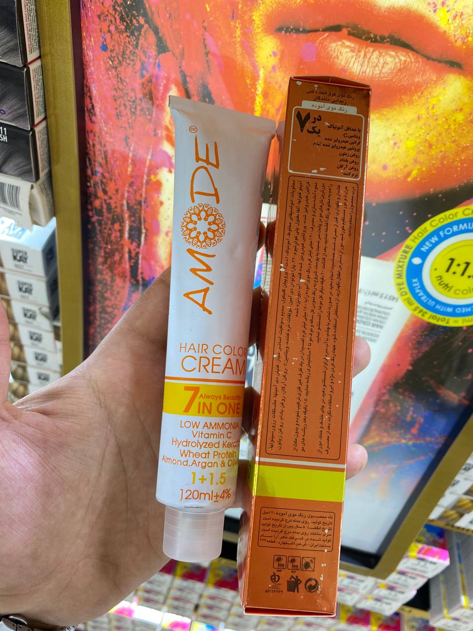 رنگ موی 120 میل فوق العاده غنی و حرفه ای آموده برای انواع موی سر مناسب می باشد و دارای کیفیت بسیار عالی و تولید آن با رعایت بالاترین استانداردهای جهانی صورت گرفته است و با فرمولاسیون جدید 7 در 1 که حاوی مواد مغذی اعم از روغن بادام (کمک به رشد مو و ضخیم کننده مو)، روغن آرگان (تقویت کننده و آبرسان مو)، روغن زیتون (حجم دهنده و جلوگیری از خشکی مو)، نرم کننده (جهت نرم کنندگی مو)، ویتامین C (جلوگیری از خشکی مو)، کراتین هیدرولیز شده (نرم کننده و ابریشمی کننده مو) و پروتئین هیدرولیز شده گندم (حاوی مواد مغذی جهت تقویت مو) می باشد و فرموله شده توسط شرکت لوون اشتاین آمریکا می باشد.