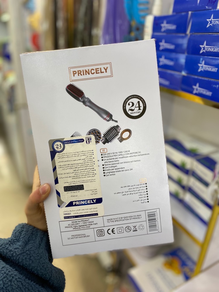 یکی از سشوارهای حرفهای تولید شده توسط شرکت پرینسلی، سشوار دارای برس حالت دهنده پرنسلی مدل PR246AT است این محصول از فناوری تولید یون بهره میگیرد که بهاین وسیله با تولید میلیونها یون منفی، باعث شکستن سریع مولکولهای آب شده و به تسریع خشک شدن موها کمک میکند ضمن اینکه جذب این یونها توسط تارهای مو باعث نرمی و لطافت آنها میشود.